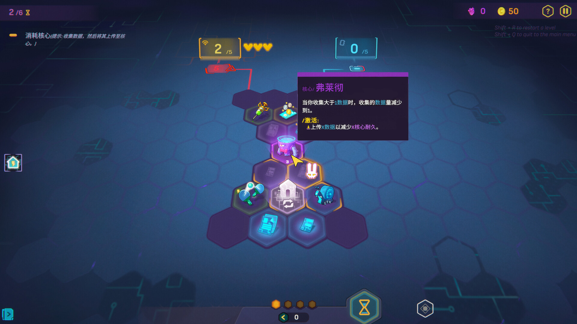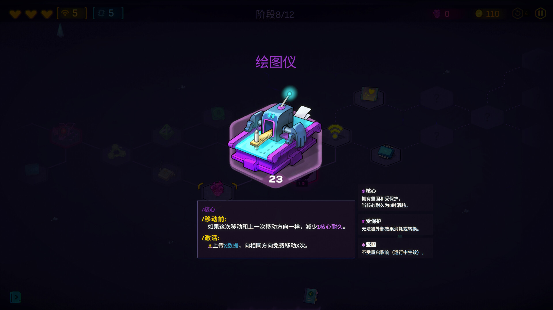 还有那些紫色的节点——核心。每个都是拥有独特能力或胜利条件的迷你Boss。它们异常强大,甚至能颠覆游戏规则。如果没有针对性策略,你将绝无胜算。